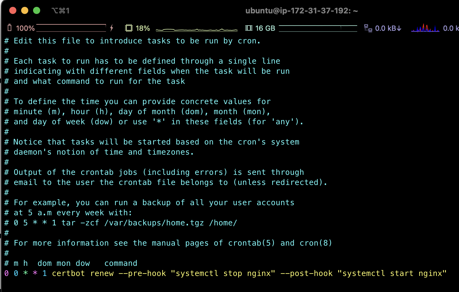 0 0 * * 1 certbot renew --pre-hook "systemctl stop nginx" --post-hook "systemctl start nginx"