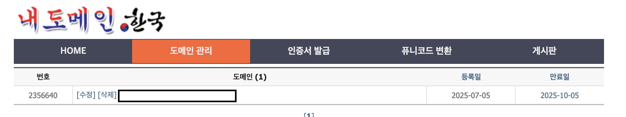 우선 도메인 사이트에서(서브도메인 사이트X) 도메인을 할당받습니다