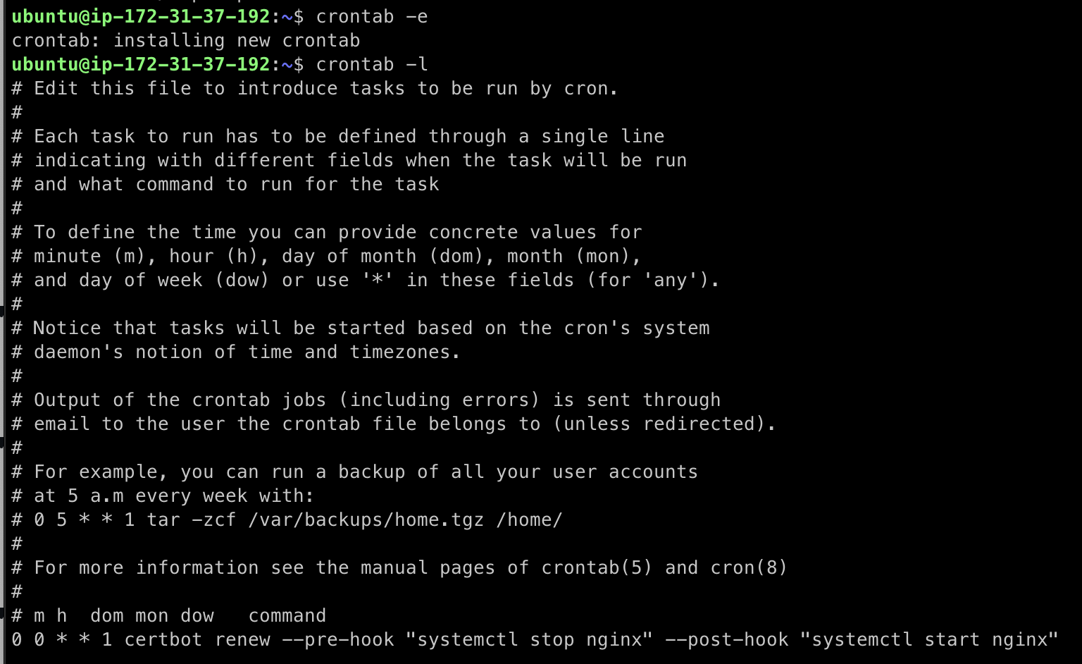 Nginx가 80포트를 점유하고 있으면 갱신이 실패할 수 있으므로, 갱신 전후로 자동으로 Nginx를 멈췄다가 다시 시작합니다