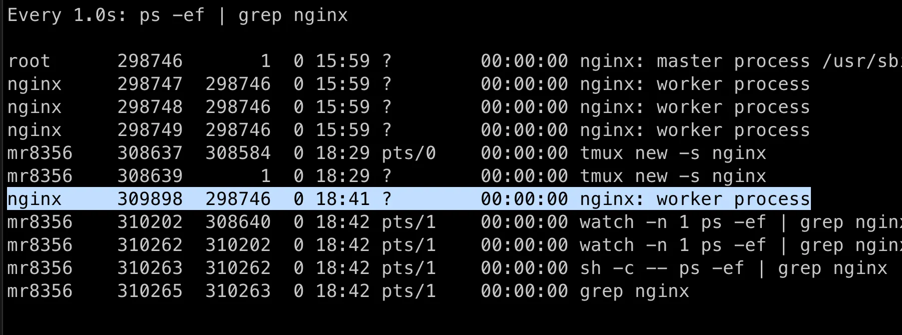 - Master는 워커 1번이 죽은 걸 감지하고(SIGCHLD), 즉시 새로운 워커를 채워 넣는다.