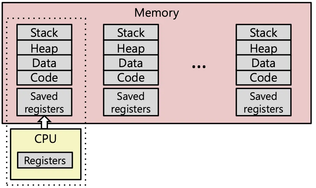 - Context Switching: CPU가 A 작업을 하다가 B 작업으로 넘어갈 때, 현재 상태를 저장하고 불러오는 비용