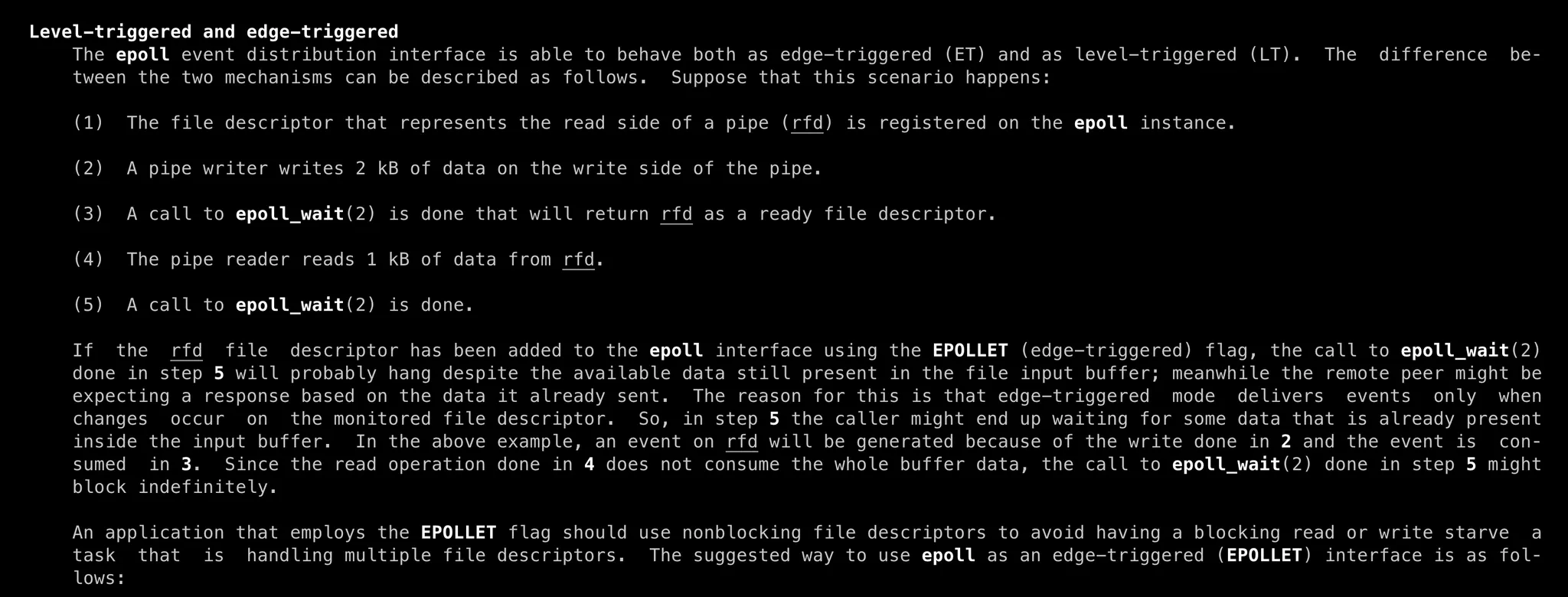 Edge Triggered (ET, EPOLLET)