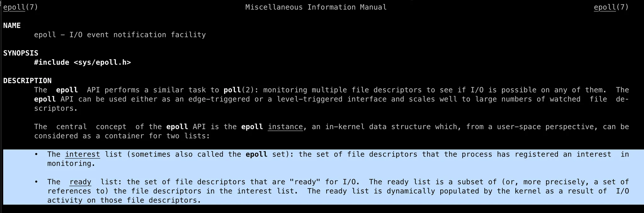 리눅스 쉘에 epoll man을 하면 system call에 대한 도큐먼트를 볼 수 있다.