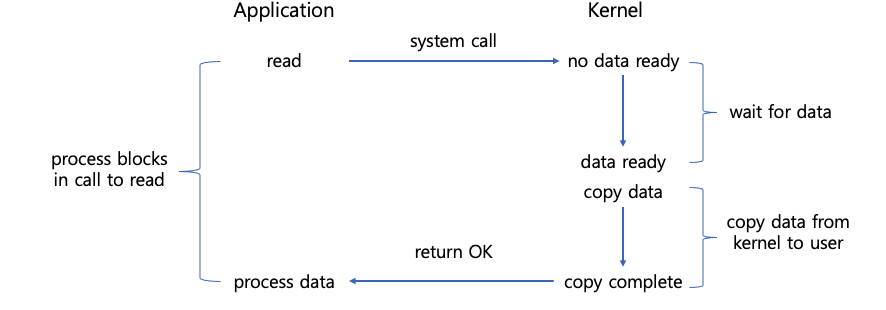 - 커널이 관리하는 소켓의 데이터가 없으면 프로세스는 block 상태이며,