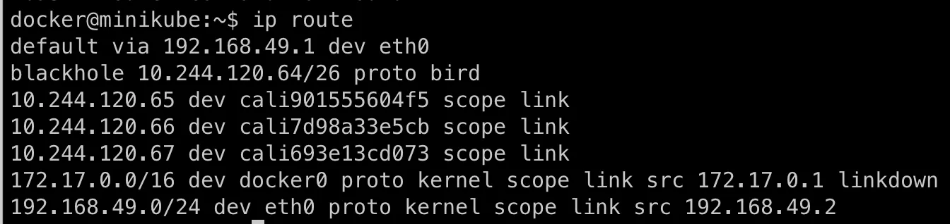- dev cali693e13cd073: 해당 IP로 가기 위해서는 cali693... 인터페이스로 패킷을 전송해야 한다.