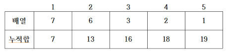 합 배열을 만드는 공식 : S[i] = S[i-1] + A[i]