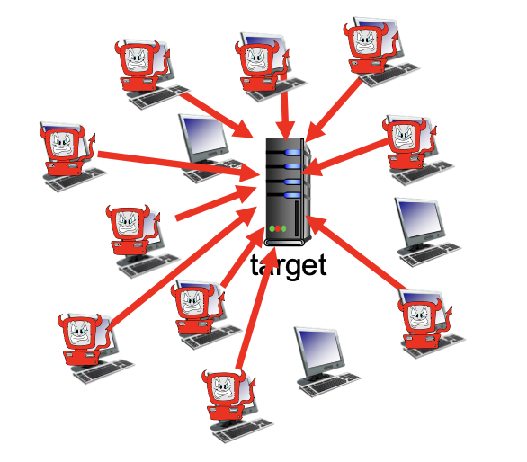 - 공격자가 여러 대의 좀비 PC를 활용해 하나의 서버나 네트워크 자원을 마비시키는 방식